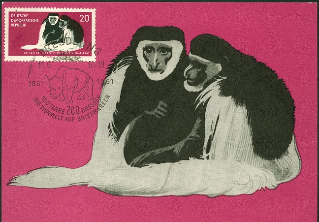 Zum 100jährigen Bestehen des Dresdener ZOOs gab die ehemalige DDR-Postverwaltung am 9. Mai 1961 zwei Sondermarken (MiNrn. 825 und 826) mit Tier-Motiven heraus.