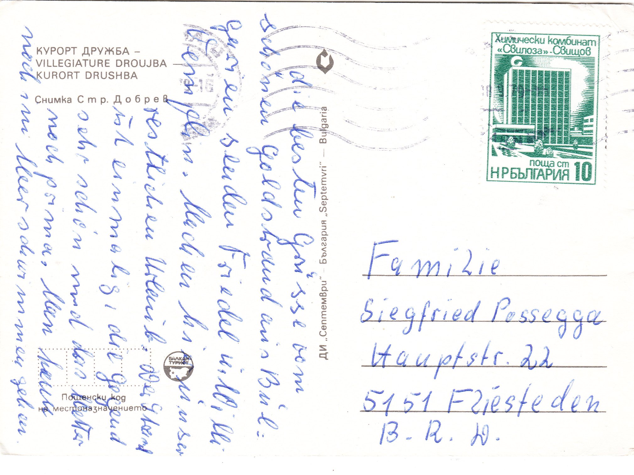 Hier eine Postkarte nach Deutschland mit einer Mischfrankatur dieser Marke: