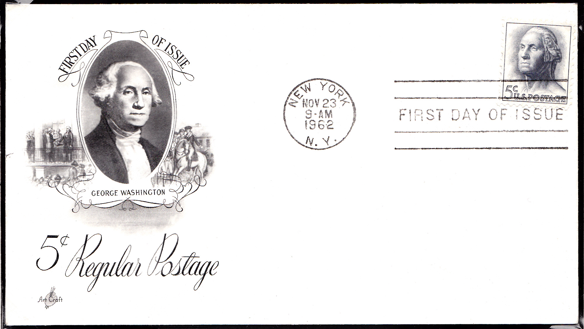 AM 23.11.1962 erschien in der Freimarken "Berühmte Amerikaner" ein weiterer 5 Cent-Wert mit George Washington (MiNr 817) zunächst auf normalem Papier, ab 28.10.1963 gab es diese Marke auch mit Phosphoraufdruck. Hierbei gibt es auch jeweils alle möglichen Zähnungsvarianten: