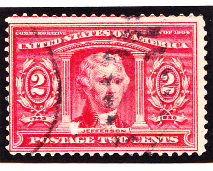 In der Sondermarkenserie vom 21. April 1904 zur Louisiana-Ausstellung in St. Louis ist auf der 2 Cent- Marke (MiNr 155) Thomas Jefferson zu sehen.