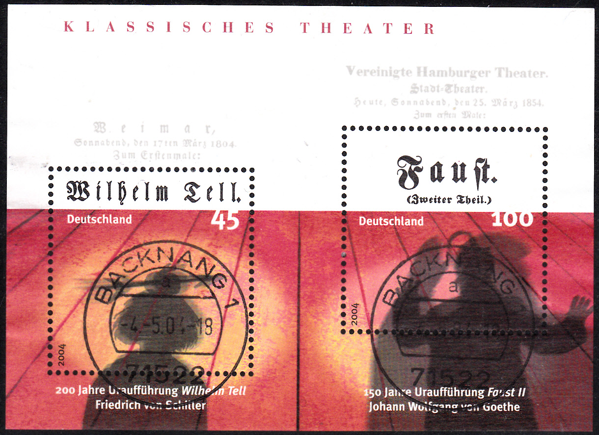 Zum 200. Jahrestag der Uraufführung von "Wilhelm Tell" erschien bei der Deutschen Post eine Sondermarke (MiNr 2391) mit einer Szene aus Wilhelm Tell. Die Marke wurde zusammen mit einer Marke zum 150. Jahrestag der Uraufführung von Goethes Faust II in einem Block (MiNr Block 65) herausgegeben.