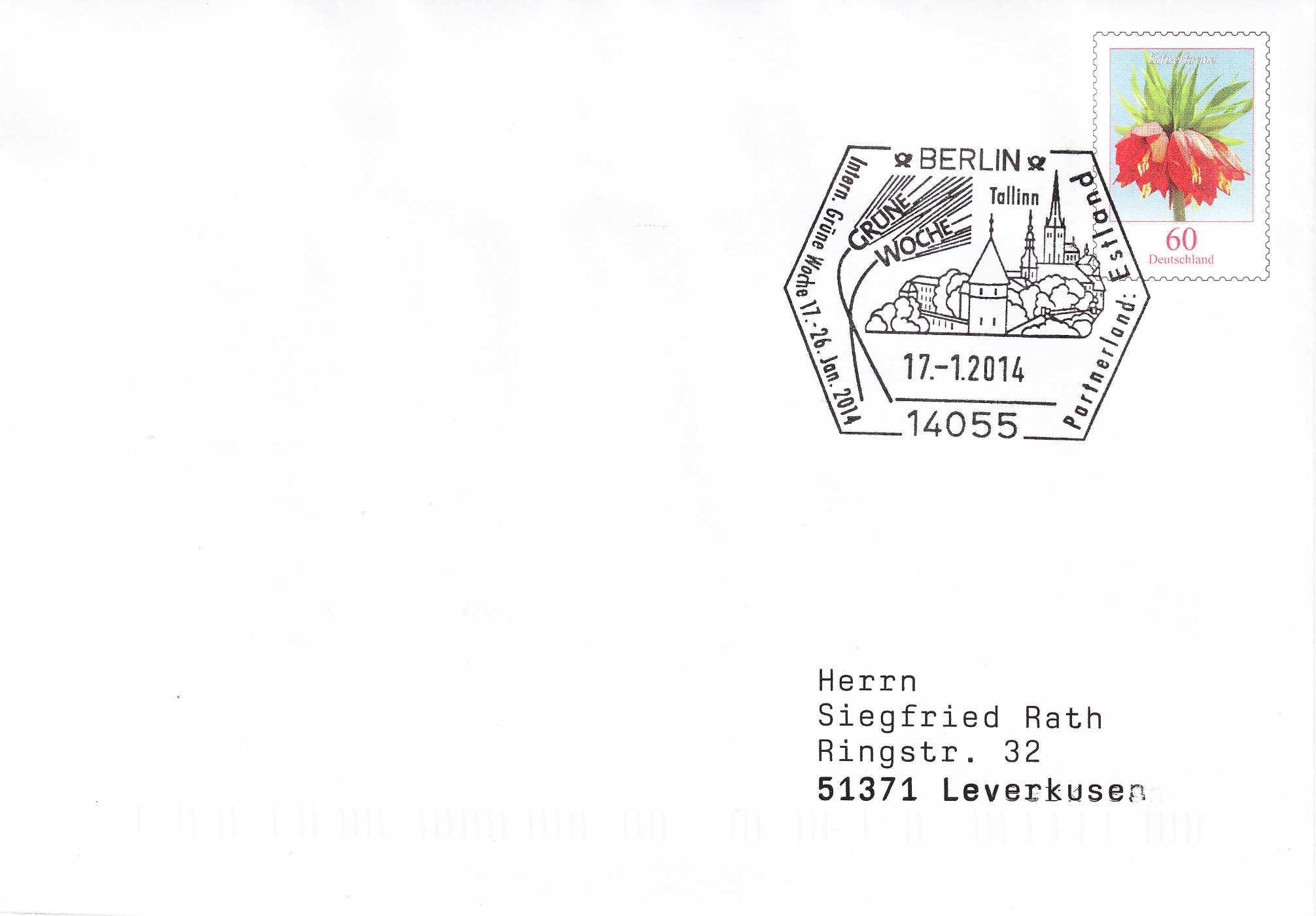 Hier als Beispiel ein Sonderstempel vom 17.01.2014 als Eröffnungstag der Grünen Woche auf einer Ganzsache: