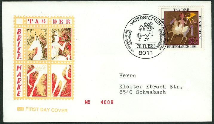 Das Jahr 1983 bescherte den Sammlern einen weiteren "Postreiter" zum Tag der Briefmarke (MiNr. 1192).