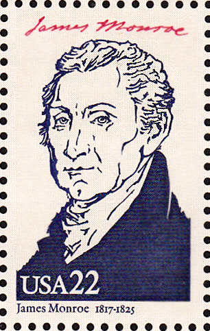 In der Freimarkenserie "Präsidenten der USA" erschien am 21.7.1938 eine Marke zu 5 Cent (MiNr 417 A) mit einem Porträt von James Monroe.