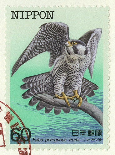 Ein Wanderfalke auf einer 1984 erschienenen japanischen Marke.