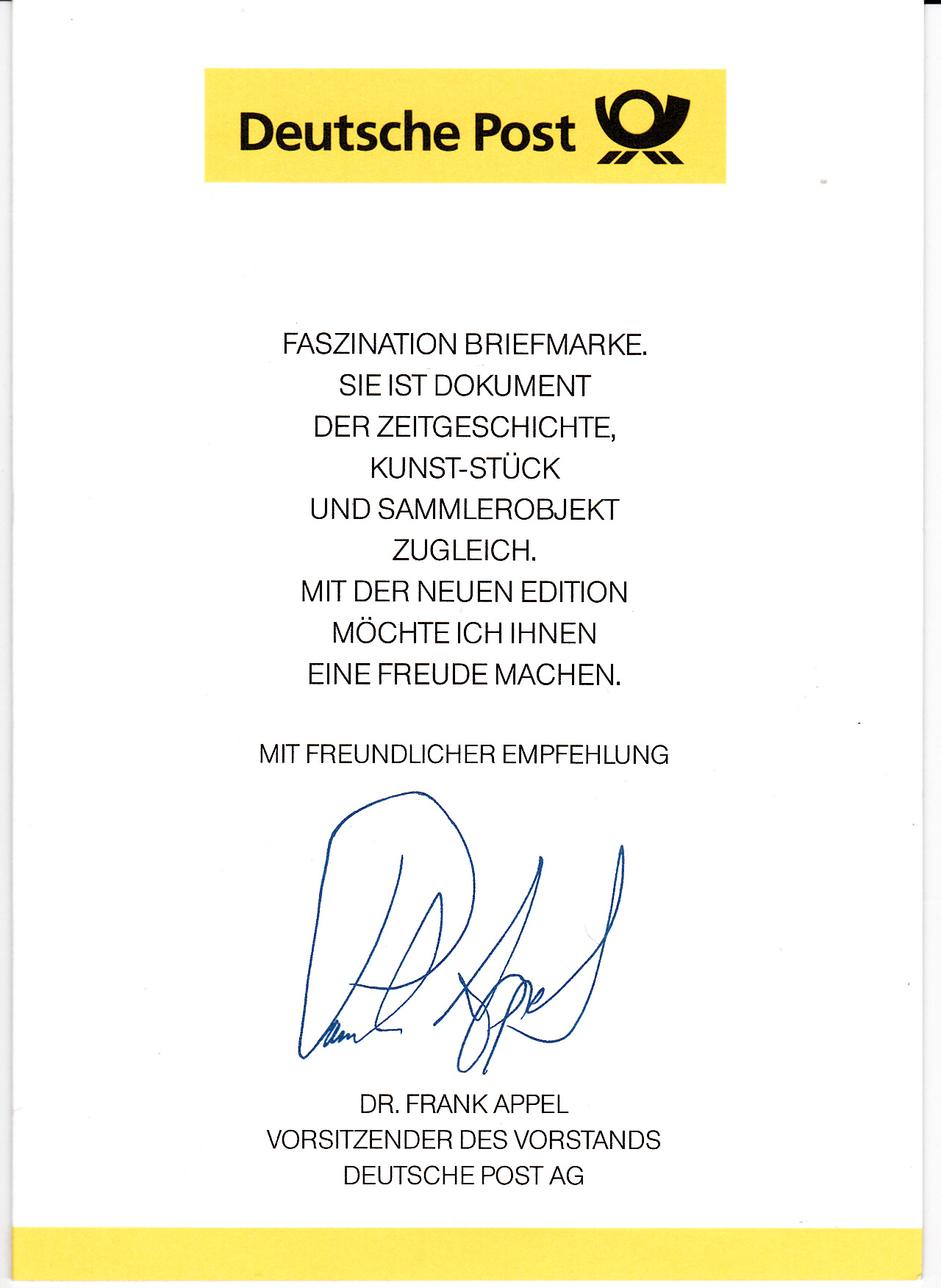 Die Marke klebt in dieser Klappkarte der Deutschen Post AG: