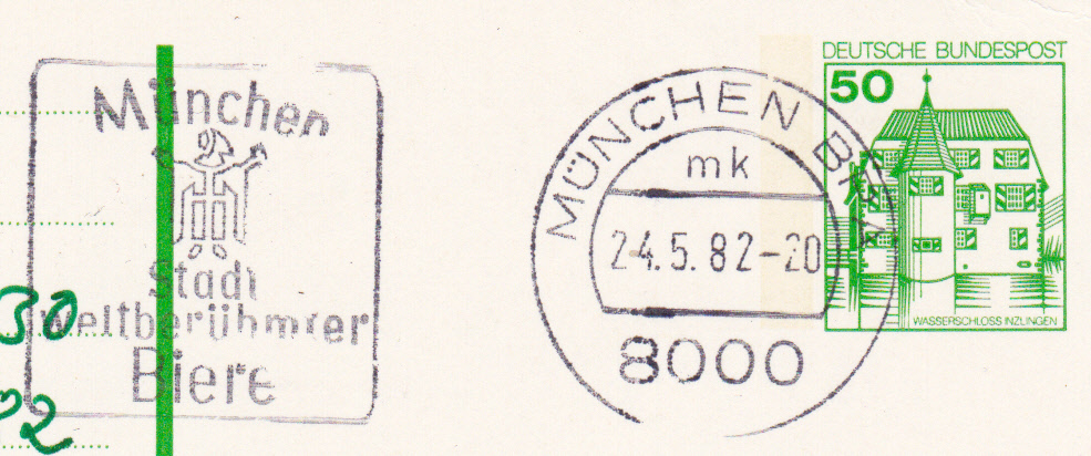Stempelkopf "München BPA", Kennbuchstaben "mk" vom 24.8.1982 20 Uhr