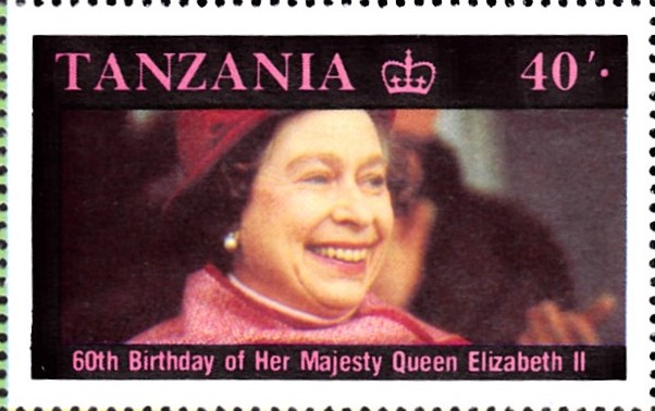 Zum 60. Geburtstag von Königin Elisabeth II. wurden in Tansania in einer Serie vier Marken verausgabt. Auf der ersten Marke der Serie (MiNr 391) ist die Königliche Familie zu sehen.