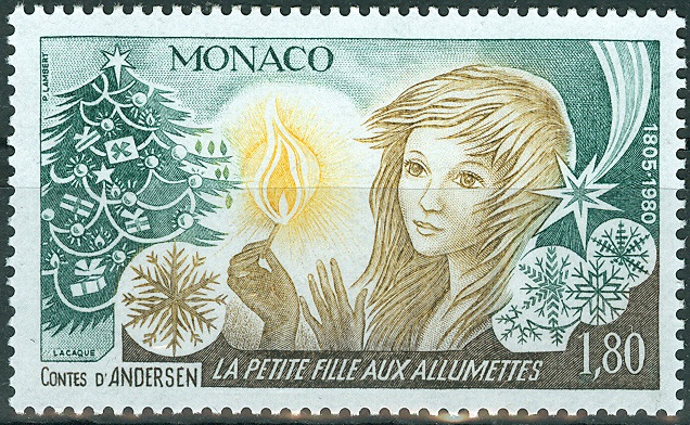 Diese monegassische Marke aus dem Jahr 1980 (MiNr. 1435) zeigt szenenhaft, was in diesem Märchen Andersens geschieht.