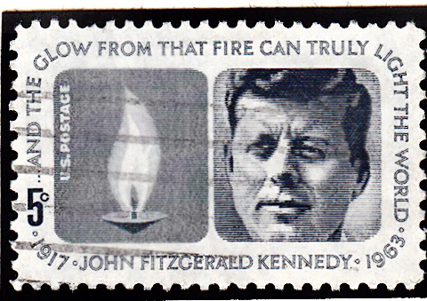 Am 29.5.1964 erschien eine Sondermarke zu 5 Cent mit einem Porträt von Kennedy und einer ewigen Flamme im Bild.