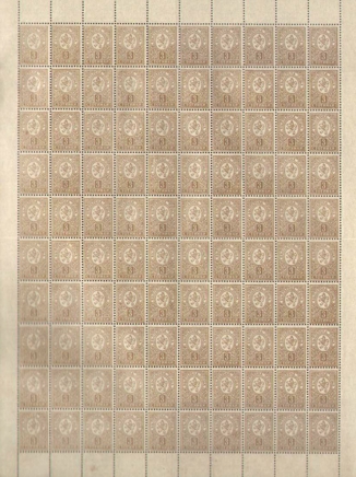 Linke Bogenhälfte zu 100 (10 x 10) mit Rändern. Maße 231 x 302 mm.