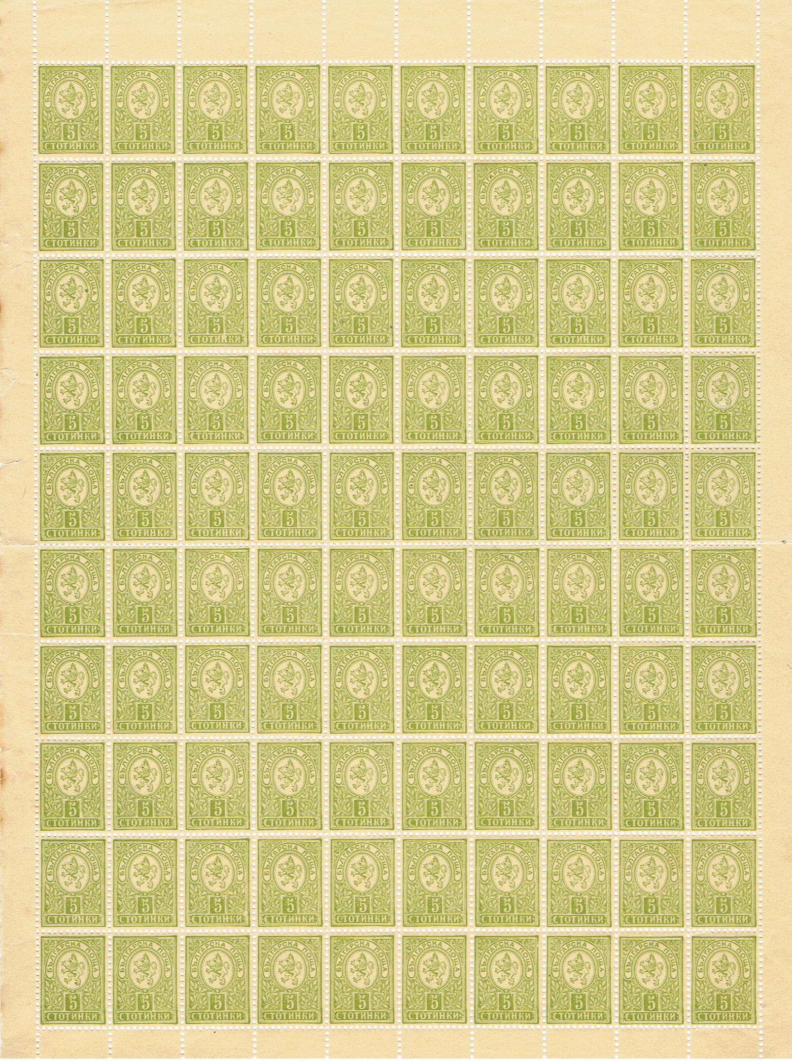 Wert / Farbe: 5 Stotinki, gelbgrün..