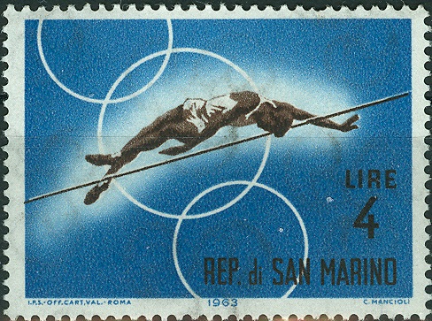 Diese Sportmotiv-Marke aus San Marino zeigt höchst wahrscheinlich eine Sportlerin, die den