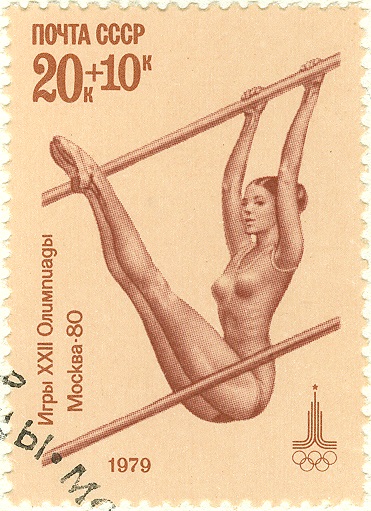 Bereits am 31. Juli 1979 erschien in Bulgarien eine Serie zu den Olympische Sommerspiele 1980 in Moskau mit dem Thema "Kunstturnen". Die hier gezeigte Marke aus dieser Serie (MiNr 2804) zeigt einen Turnerin am Stufenbarren.
