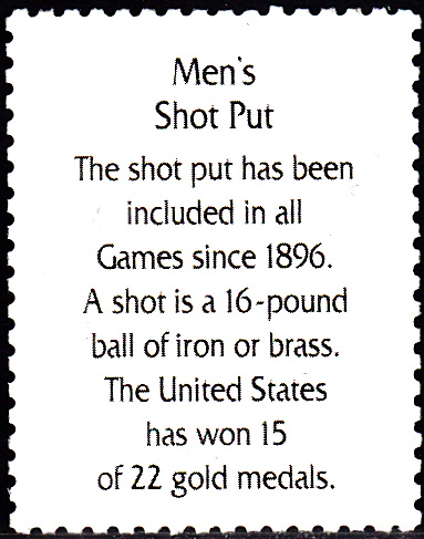 Auf der Rückseite wieder eine kurze Info über Kugelstoßen und die Erfolge der USA bei den Olympischen Spiele: