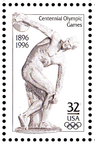 In den USA erschien am 19. Juli 1996 diese Marke zum Thema "100 Jahre Olympische Spiele der Neuzeit, Olympische Sommerspiele, Atlanta" diese Marke (MiNr 2750) mit der Abbildung einer römische Kopie des kompletten Diskobol des Myron (um 450 v. Chr.).