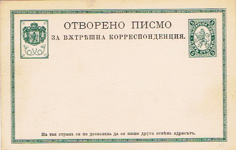 5 Stotinki Inlandspostkarte. Werteindruck grün.