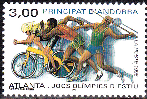 Am 29. Juni 1996 erschien bei der französischen Post in Andorra eine Marke (MiNr 500) zu den Olympischen Sommerspielen in Atlanta mit der Abbildung Einzelzeitfahrers, eines Läufers und eines Speerwerfers.