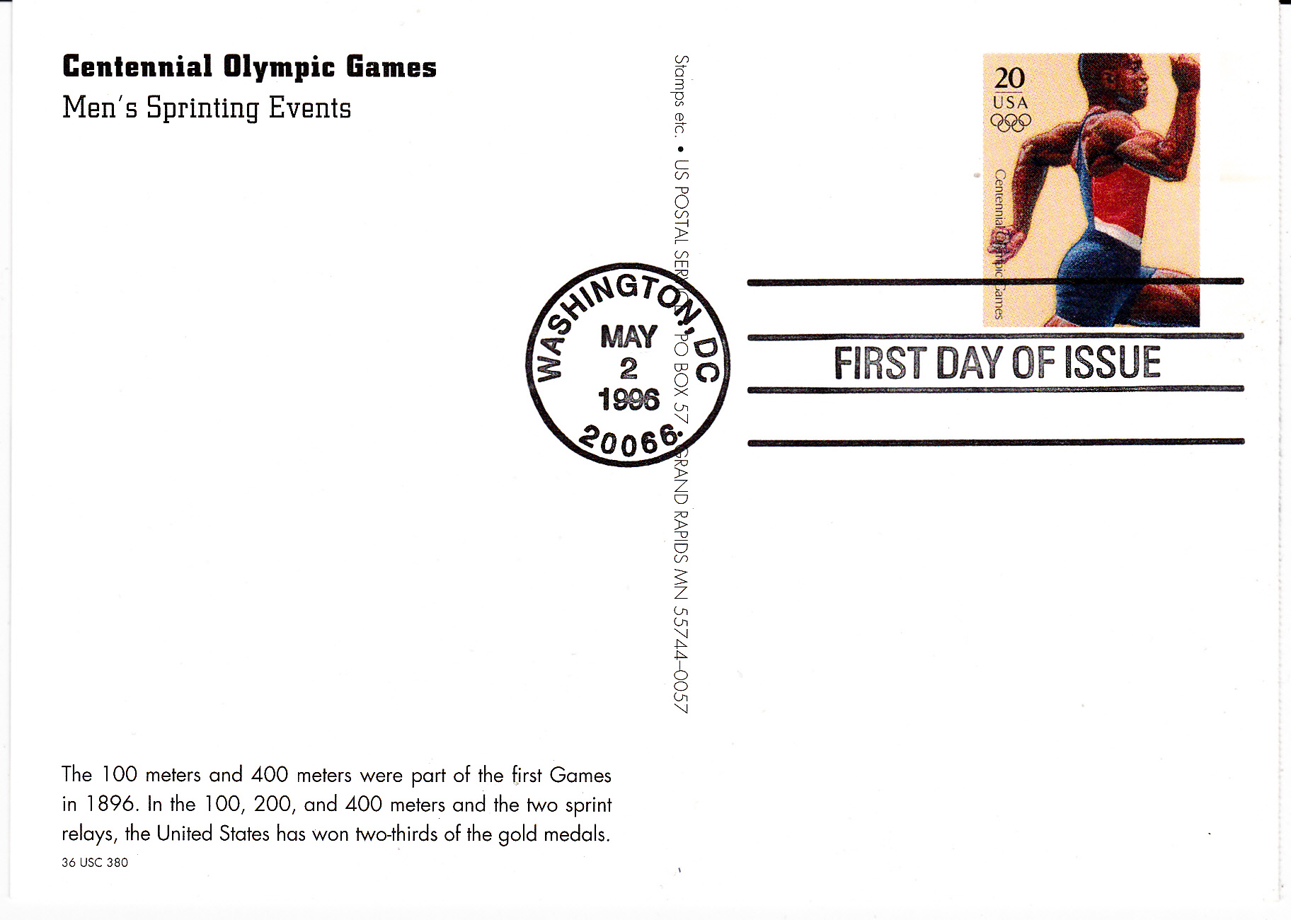 Rückseitige Kurzinformation über die Sprintwettbewerbe der Männer und die USA-Erfolge bei Olympia.