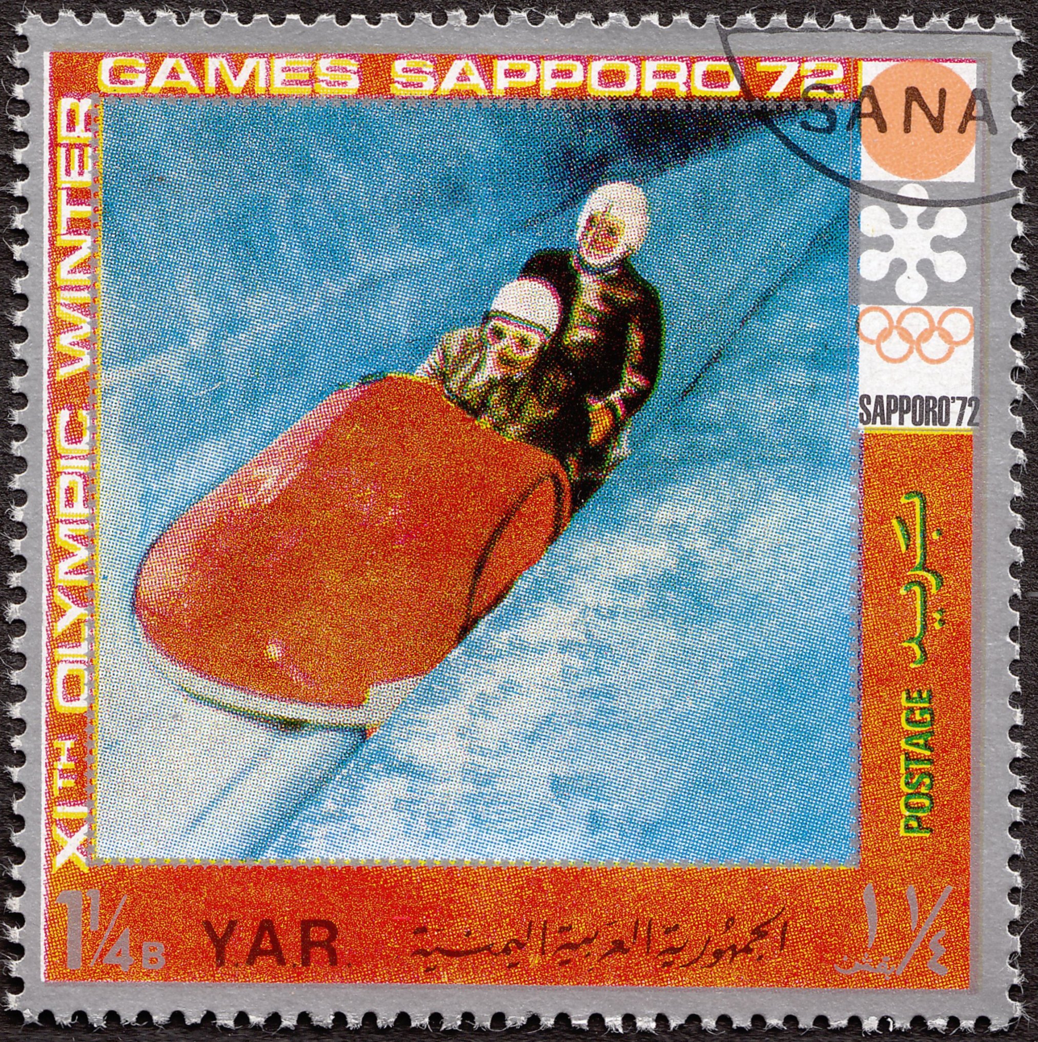 Diese im Jemen (Nordjemen), Y.A.R. = Yemen Arab Republic, erschienene "Briefmarke", NiNr. 1442, zeigt einen Zweierbob aus Japan: