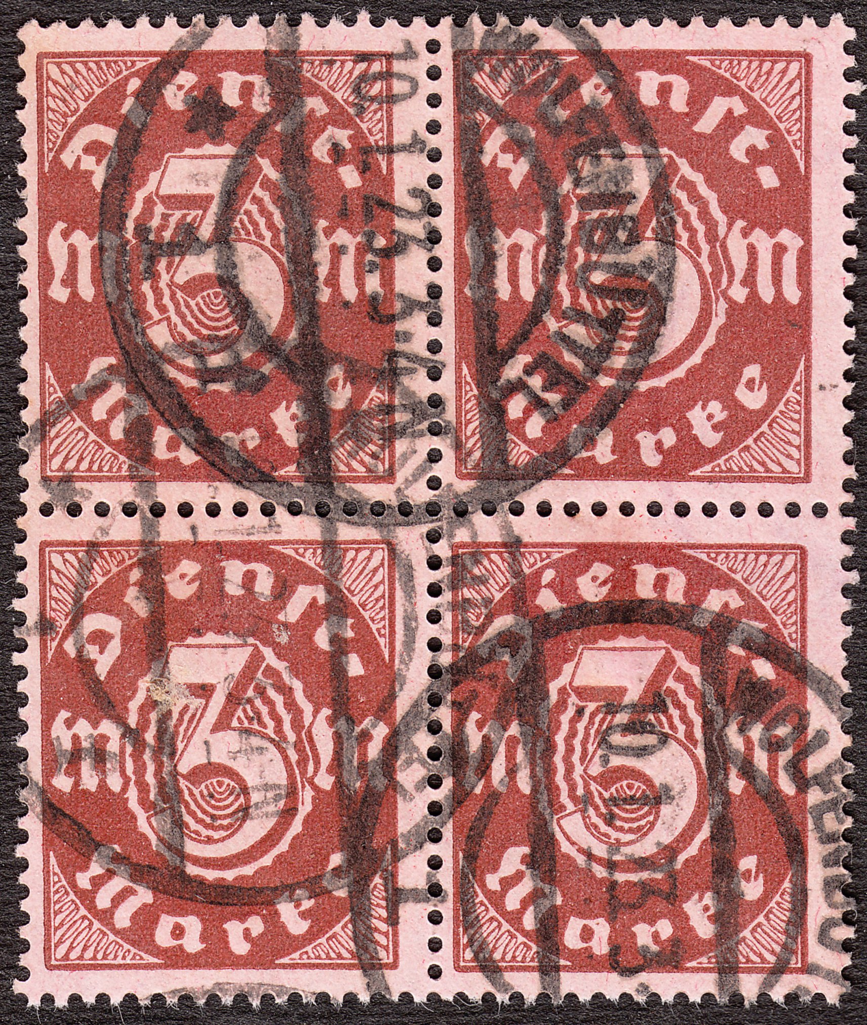 Hier eine MiNr. 67 im Viererblock gestempelt am 10.01.1923 in WOLFENBÜTTEL: