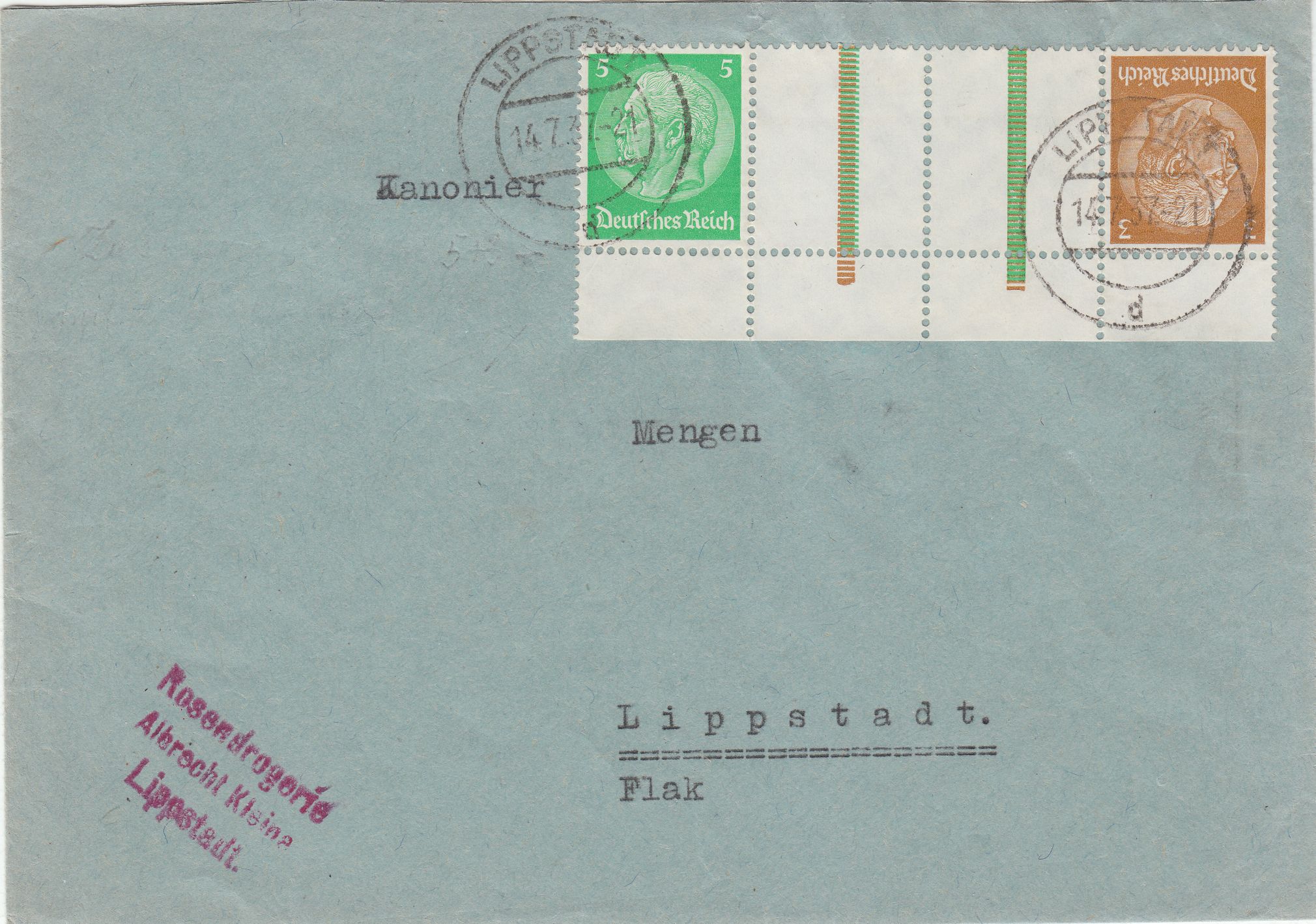 Brief, gelaufen im Ortsverkehr in Lippstadt, portorichtig mit 8 Pfennig frankiert in Form eines Zusammendruckes MiNr. KZ 25 mit Rand, somit aus dem MHB 40 stammend: