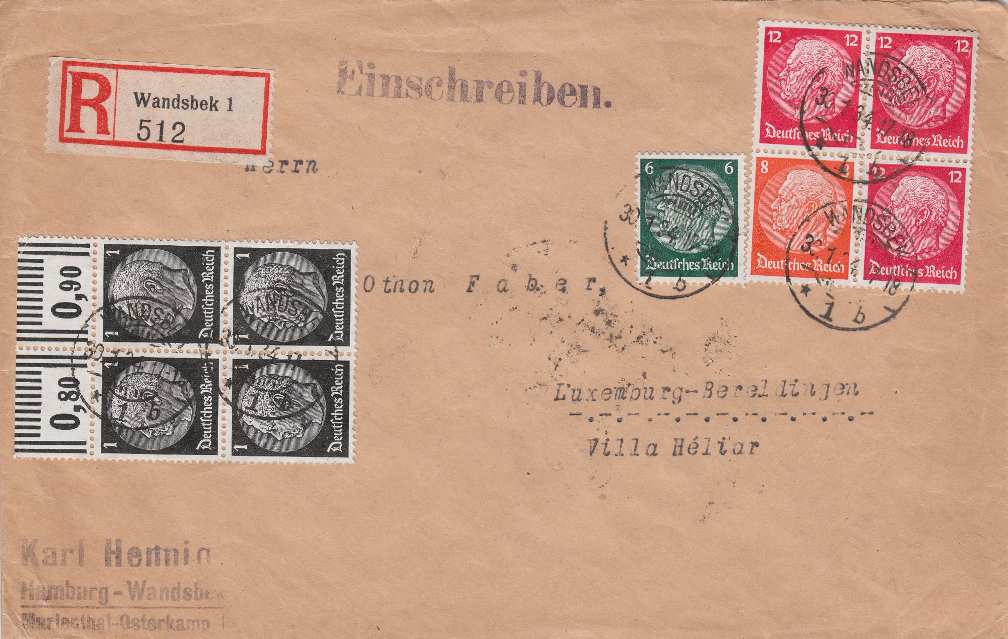 Dieser am 30.01.1934 in WANDSBEK aufgegebene Brief wurde somit mit 54 Pfennig portorichtig frankiert: