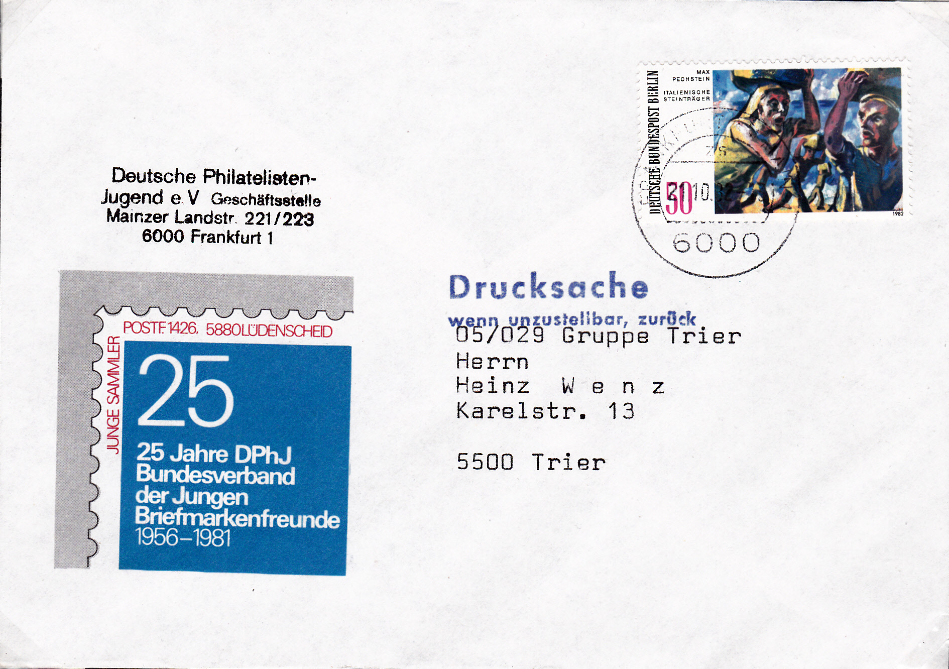 Auf der Marke aus Berlin (MiNr 678) ist sein Gemälde "Italienische Steinträger" abgebildet.