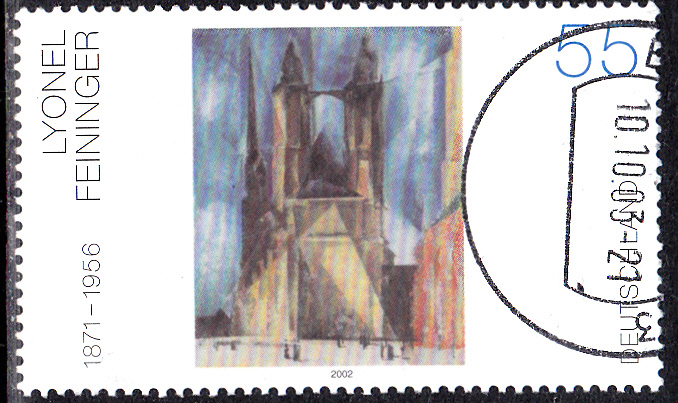 Auf diesem Brief per Einschreiben in die Schweiz wurde ein Viererblock der Marke MiNr 2294 mit dem Gemälde "Markthalle von Halle" von Lyonel Feininger mit dem Ersttagsonderstempel Bonn entwertet. Die Zusatzfrankatur mit einer Marke aus der DS "Sehenswürdigkeiten" zu 80Pf/0,41€ (MiNr 2177) erhielt einen Tagesstempel Bonn. Das Porto betrug für einen Brief bis 20g 56 Cent und für die Zusatzleistung Einschreiben 205 Cent, zusammen als 261 Cent.