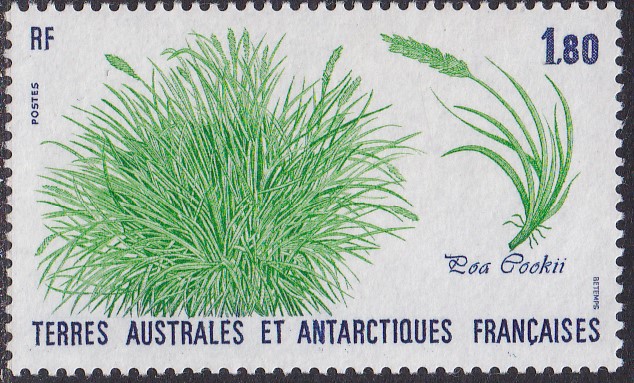 Auf dieser Marke (MiNr 223) aus einer Serie "Pflanzen der Antarktis" der Französischen Gebieten der Antarktis wird dieses Gras gezeigt.