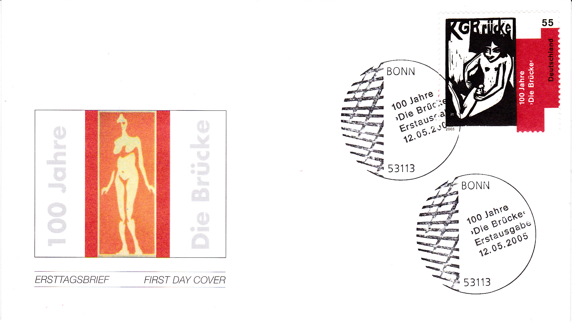 Zum Jubiläum "100 Jahre Die Brücke" ist diese Marke bei der Deutschen Post erschienen (MiNr 2458). Als Motiv wurde die "Sitzende Fränzi" nach einem Holzschnitt von Erich Heckel ausgewählt. Es ist zwar jetzt kein "Gemälde" im eigentlichen Sinn, aber ich stelle es trotzdem hier mit ein, da das Werk zu den Arbeiten des Malers Erich Heckel gehört!