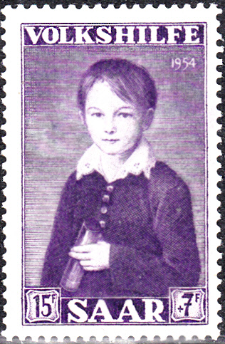 Im Volkshilfesatz 1954 aus dem Saarland zeigt eine Marke (MiNr 356) das Werk "Der junge Baron Emil von Maucler" von Johann Friedrich Dieterich.