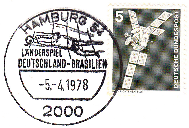 Am 5.April 1978 spielte die Deutsche Nationalmannschaft in Hamburg gegen Brasilien und verlor mit 0:1. Im Sonderstempel vom 5.4.1978 aus Hamburg zu diesem Spiel wird ein Torhüter bei der Abwehr eines Schusses auf das Tor gezeigt.
