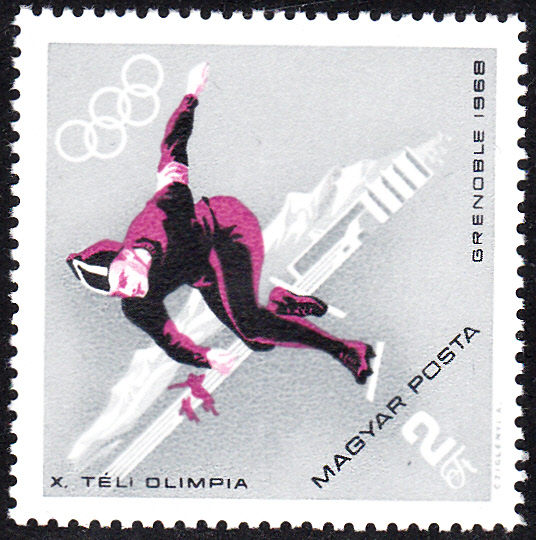 In Ungarn erschien in einer Serie zu den Spielen 1968 in Grenoble eine Marke (MiNr 2384 A) mit einem Eisschnellläufer im Markenbild.
