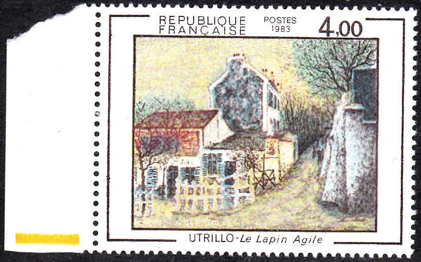 Zum 100 Geburtstag von Maurice Utrillo erschien in Frankreich diese Marke (MiNr 2422) mit seinem Gemälde Gasthaus "Le Lapin Agile".