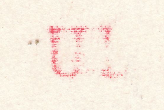 Dann lief der Brief zur Ausgangssortierung durch die TRANSORMA, worauf ein Operatorstempel "CU" hinweist: