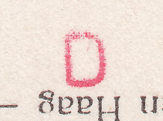 Diese Postkarte durchlief in Den Haag = ’s-Gravenhage die Stempelmaschine sowie die Ausgangssortierung per TRANSORMA, siehe Operatorstempel "YY", wobei aber lediglich ein minimaler Teilabschlag des Maschinenstempels auf dem Beleg erfolgte:
