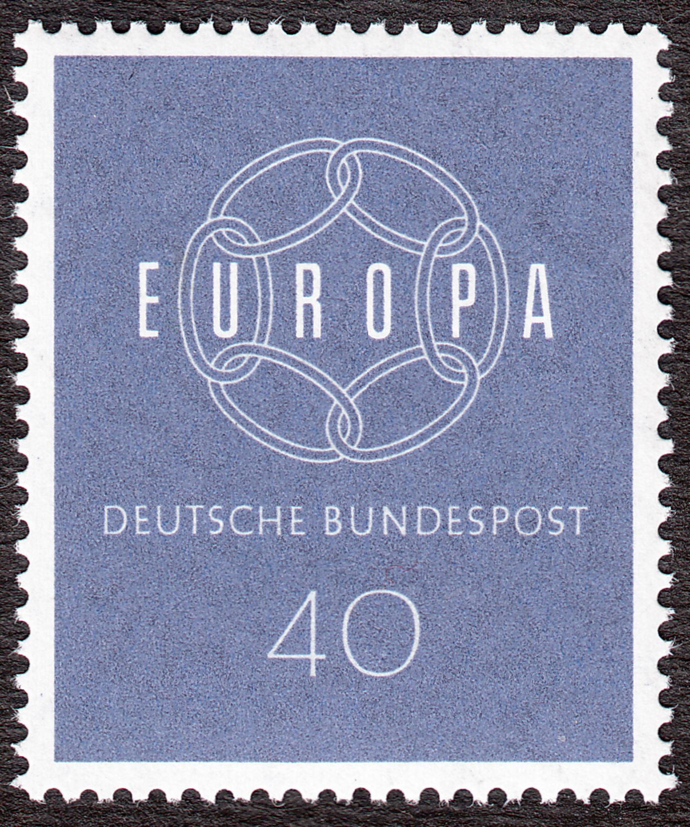 Am 19.09.1959 erschien die in einer Auflage von 25 Millionen Stück im Offsetdruck hergestellte Wertstufe zu 40 Pfennig der Europamarke 1959: