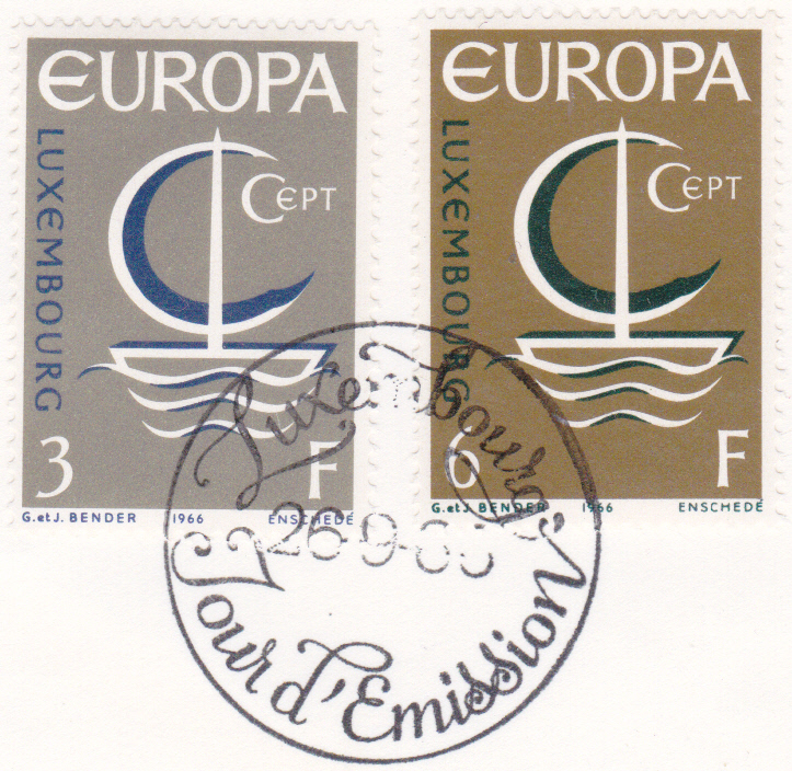 In Luxemburg erschienen die Europamarken 1966 am 26. September 1966. Hier die Marke zu 3 Fr dunkelolivgrau/schwarzblau mit dem Gemeinschaftsmotiv "Stilisiertes Boot mit geblähtem Segel und Inschrift „CEPT“", die in einer Auflage von 1 800 000 Stück erschien.