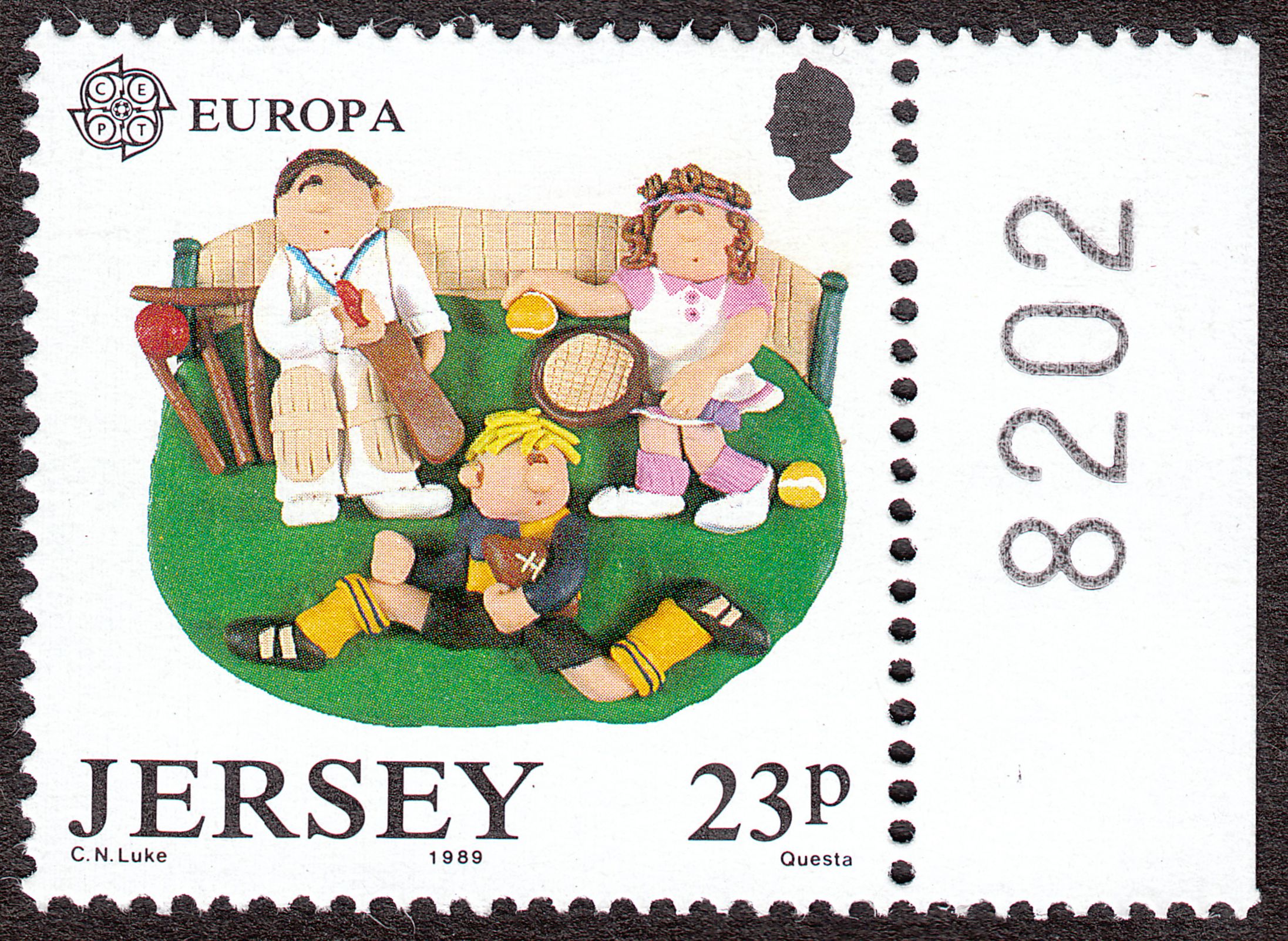Hier die Europamarke Jersey MiNr. 479 vom rechten Bogenrand mit Bogenzählnummer: