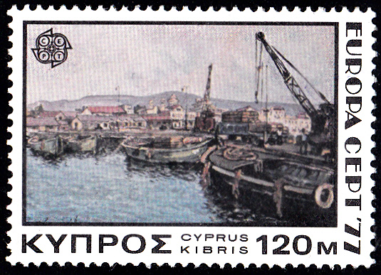 Kompletter Satz der Europamarken 1977 mit der Zwangszuschlagsmarke für die Flüchtlingshilfe auf einem Einschreibebrief mit Luftpost vom 2.5.1975 von Nicosia nach Ludwigshafen. Die Europamarken wurden mit dem Ersttaghsonderstempel entwertet, die Zwangszuschlagsmarke mit einem Tagesstempel.