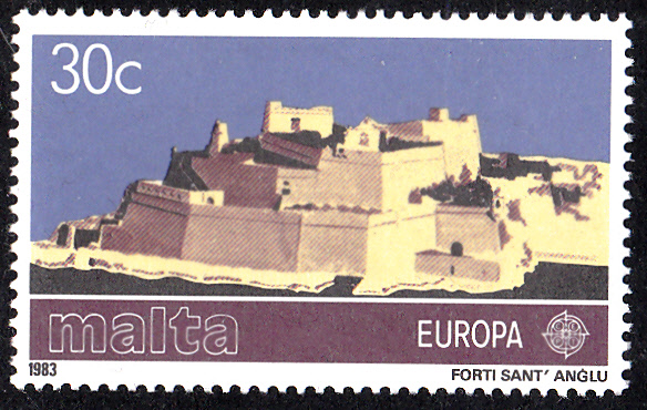 Auf Malta erschienen die Europamarken 1983 zum Gemeinschaftsthema "Große Werke des menschlichen Geistes" am 5.Mai 1983. Hier die Marke zu 30 Cent mit der Abbildung des Fort St. Angelo (1530).