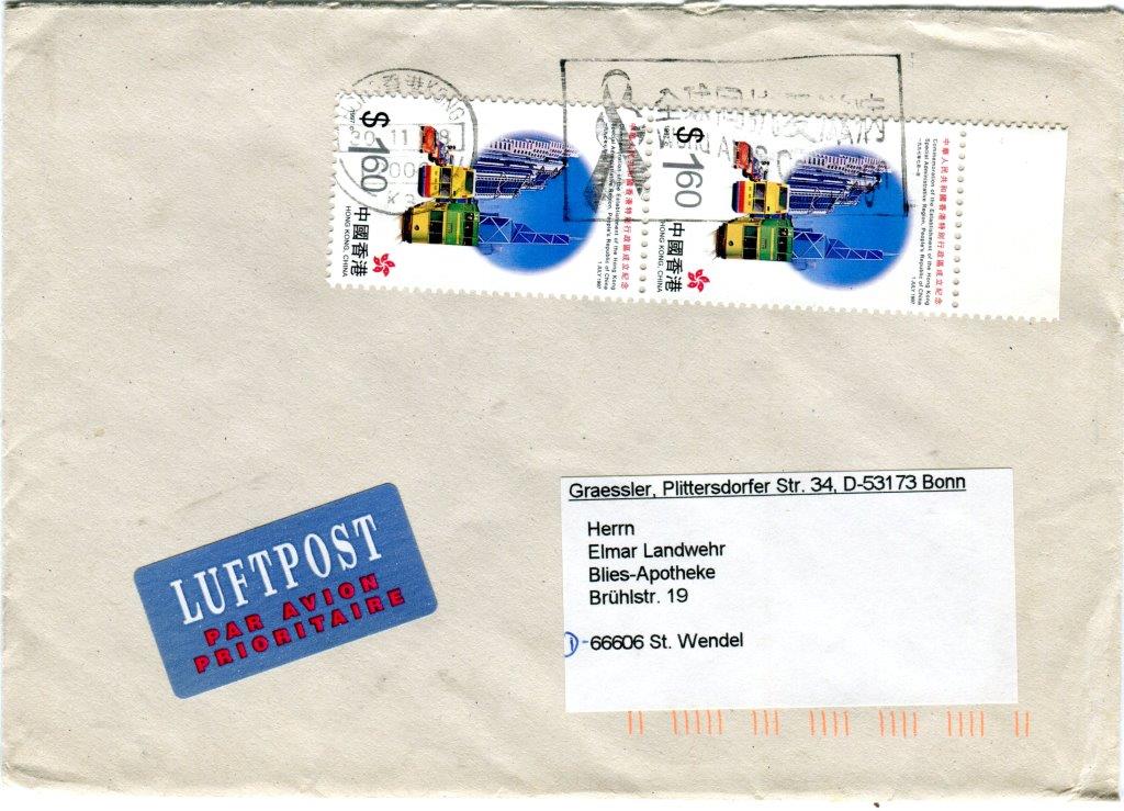der Luftpostaufkleber aus Hongkong in deutsch? Briefumschlag kein Luftpostumschlag,