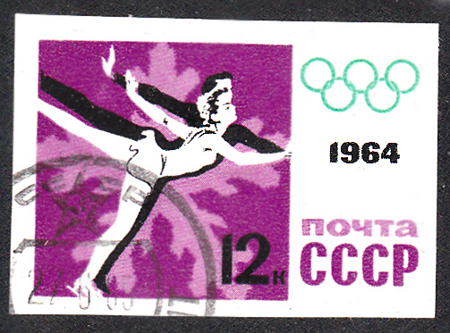 Die Sowjetunion verausgabte am 29.1.1964 eine Serie von fünf geschnittenen Marken zu den Olympischen Spiele 1964 in Innsbruck. Der Wert zu 12 Kopeken (MiNr 2869 B) aus dieser Serie zeigt ein Paar beim Eiskunstlauf. Am 4.2.1964 erschien diese Marke auch als gezähnte Marke