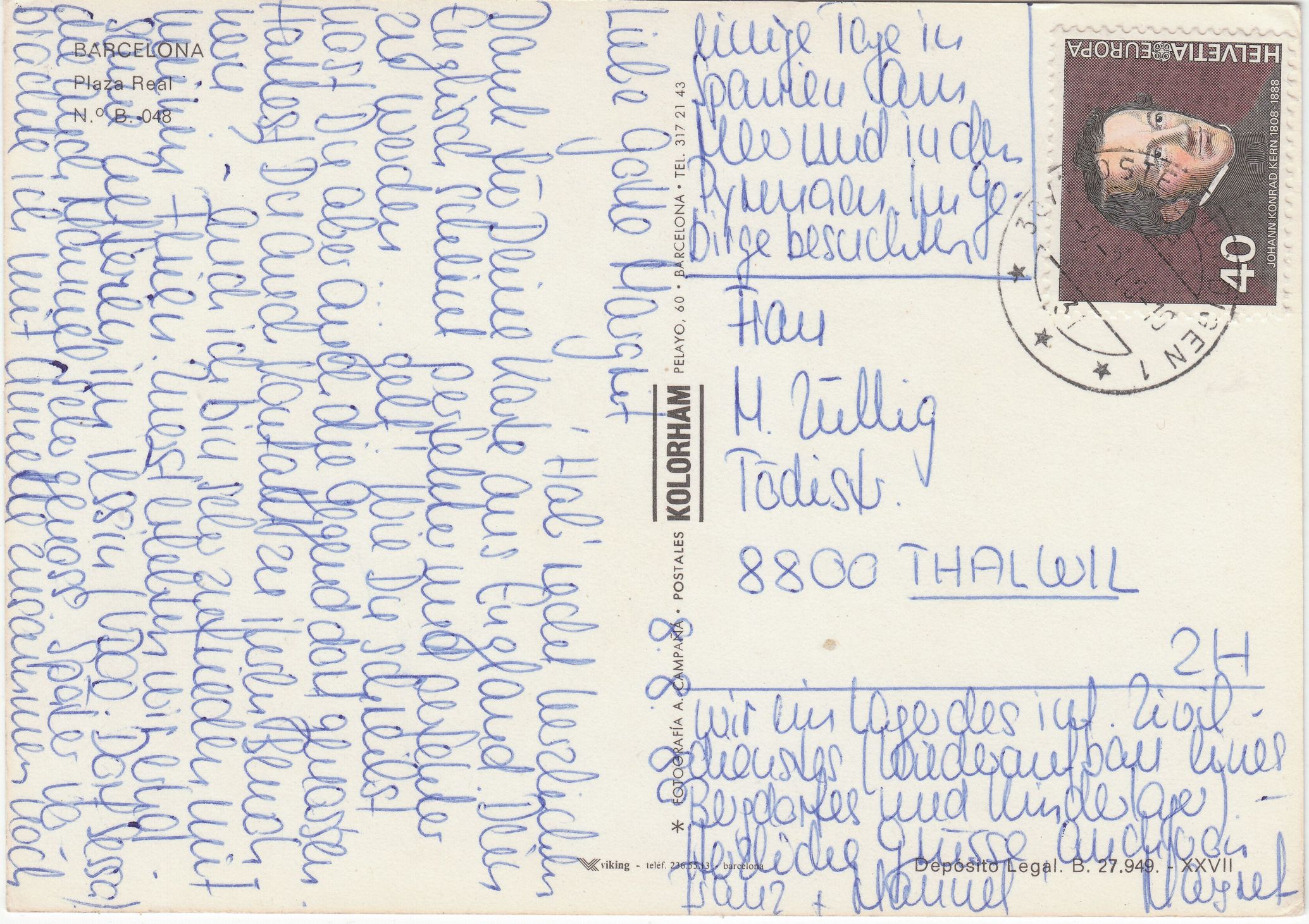 EF der Europamarke 1980 der Schweiz der Wertstufe zu 40 Rappen am 09.08.1980 auf Postkarte innerhalb der Schweiz, nach Thalwil adressiert: