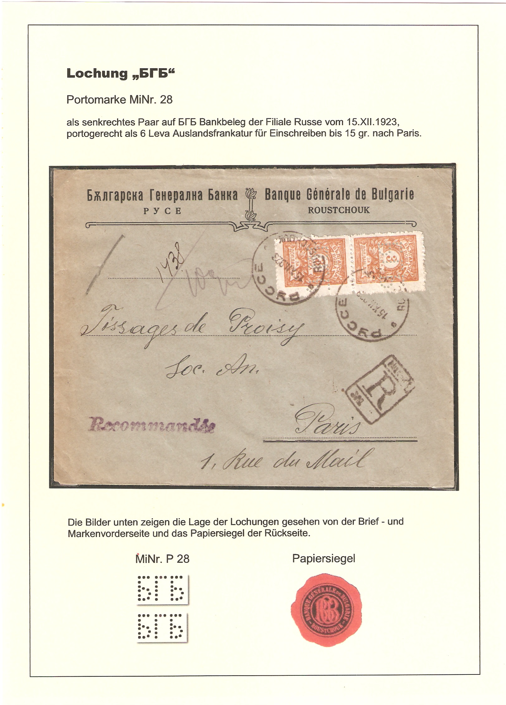 heute möchte ich euch die Portomarke MiNr. 28 mit der Lochung "БГБ" auf Beleg vorstellen.