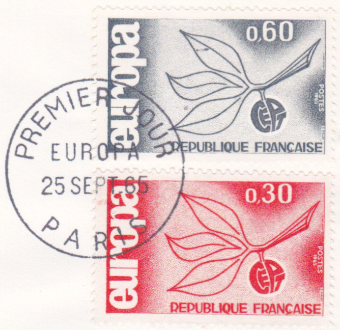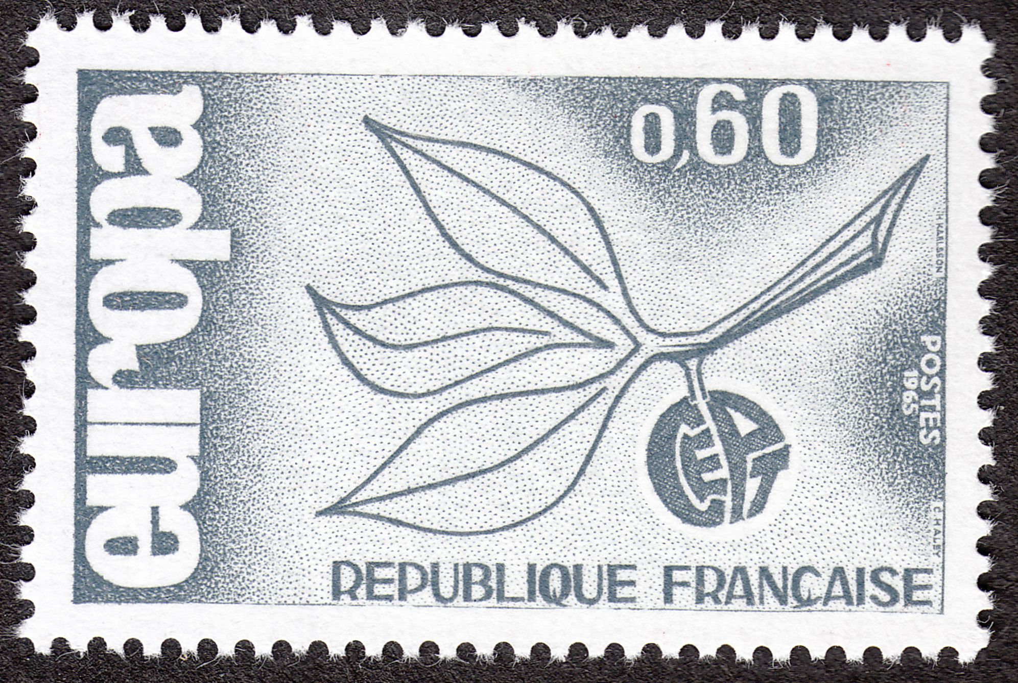 1965 war das einheitliche Motiv der insgesamt 36 in 19 Ländern ausgegebenen Europamarken ein von dem isländischen Künstler Hördur Karlsson entworfener Zweig mit drei Blättern sowie einer aus den Buchstaben CEPT gebildeten Frucht. Die 3 Blätter stehen dabei für Postwesen,Telegraphie und Telefonie.
