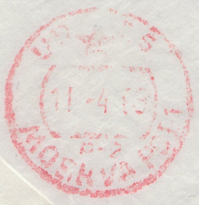 Rückseitig dokumentierte am 11.04.1969 ein Tagesstempel aus Moskau in Rot diese Maßnahme: