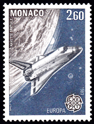 In Monaco erschienen die Europamarken 1983 am 27. April 1983 zum Gemeinschaftsthema "Große Werke des menschlichen Geistes". Hier die Marke zu 2,60 Fr, die eine Raumfähre (1983) zeigt. Die Marke erschien in einer Auflage von 323 682 Stück.