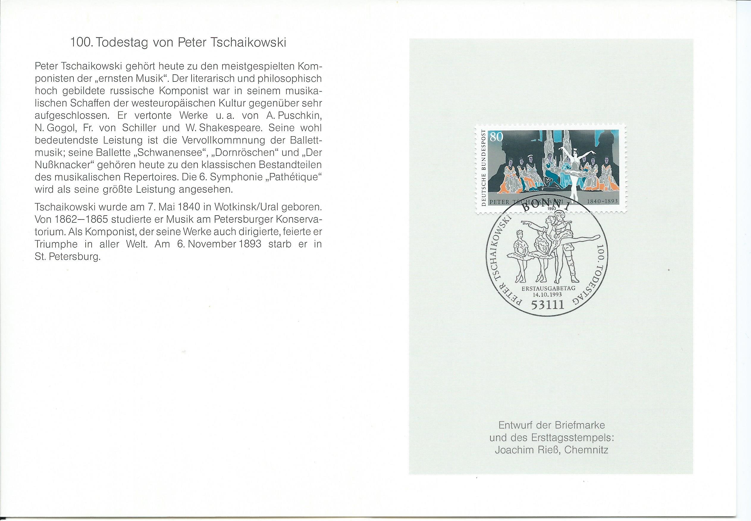 Langsam ändert sich das Layout der Karten, hier eine aus 1993 mit der Ausgabe 100. Todestag Peter Tschaikowski: